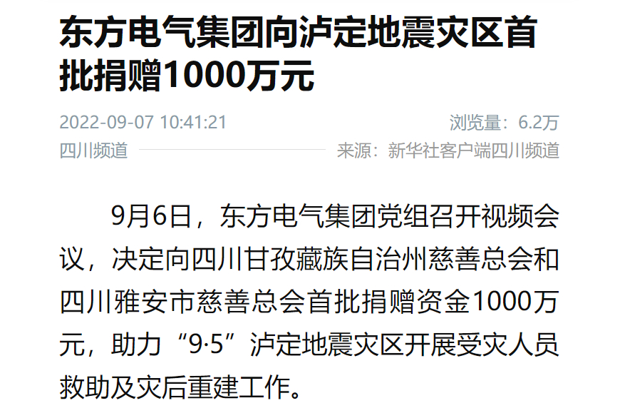 [新华社]凯时官网集团向泸定地动灾区首批捐赠1000万元