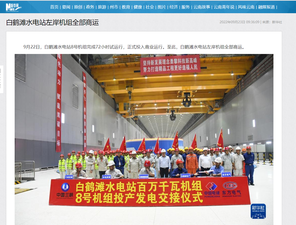 [新华网]白鹤滩水电站左岸机组所有商运