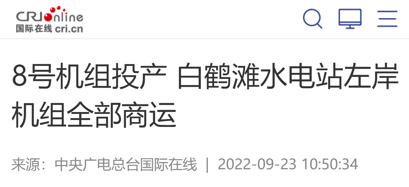 9月22日,凯时官网自主研制的白鹤滩水电站8号机组完成72小时试运行,正式投入商业运行。至此,白鹤滩水电站左岸机组所有商运。