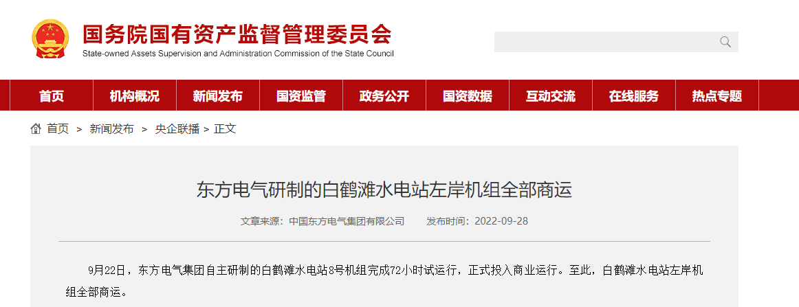 9ÔÂ22ÈÕ£¬¿Ê±¹ÙÍø¼¯ÍÅ×ÔÖ÷ÑÐÖÆµÄ°×º×̲ˮµçÕ¾8ºÅ»ú×éÍê³É72СʱÊÔÔËÐУ¬ÕýʽͶÈëÉÌÒµÔËÐС£ÖÁ´Ë£¬°×º×̲ˮµçÕ¾×ó°¶»ú×éËùÓÐÉÌÔË¡£