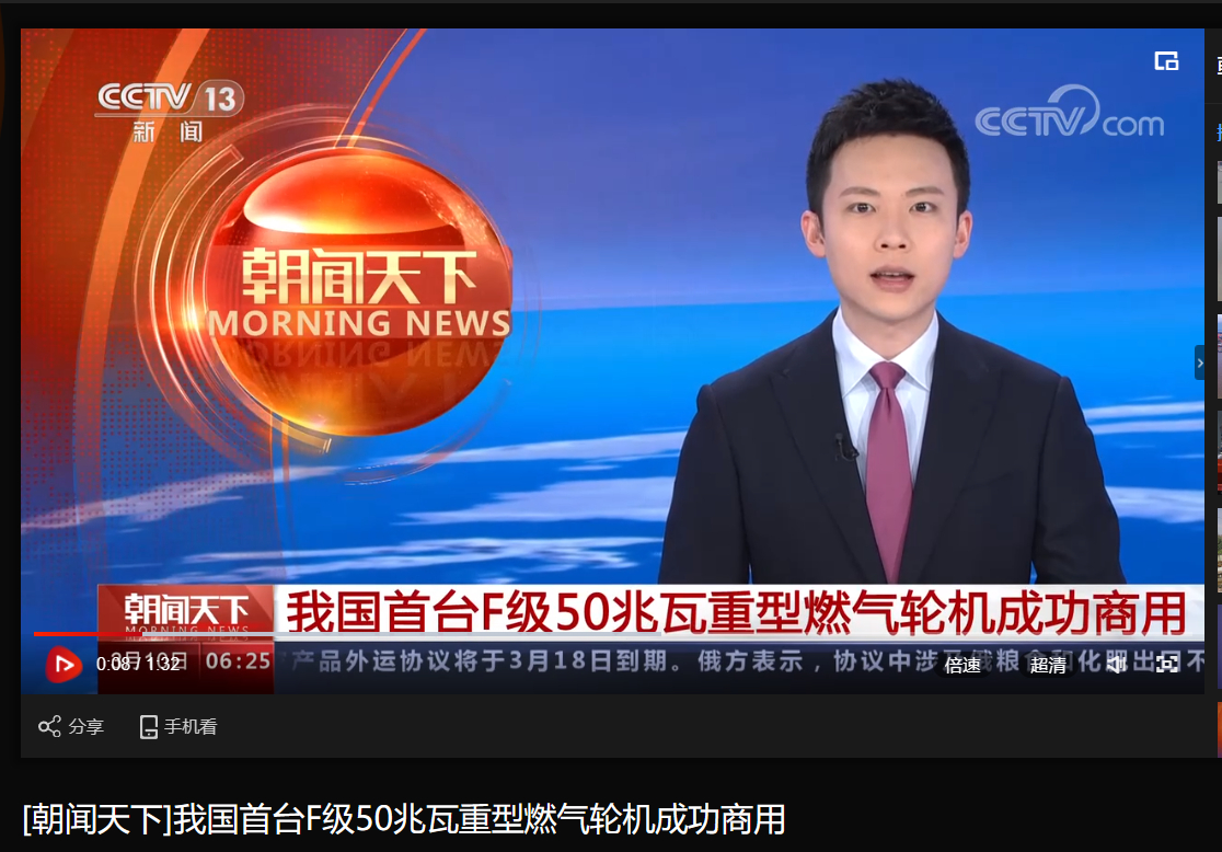 [央视朝闻天下]我国首台F级50兆瓦重型燃气轮机乐成商用