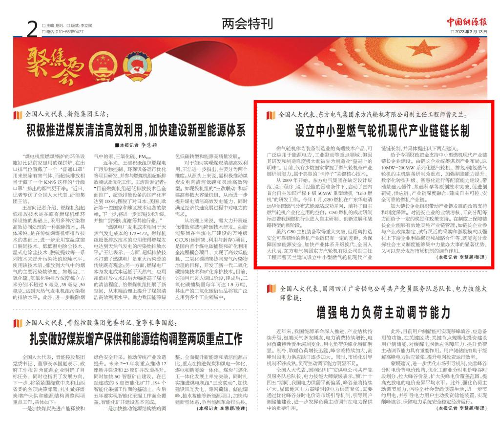 [中国能源报]天下人大代表曹天兰:设立中小型燃气轮机现代工业链链长制