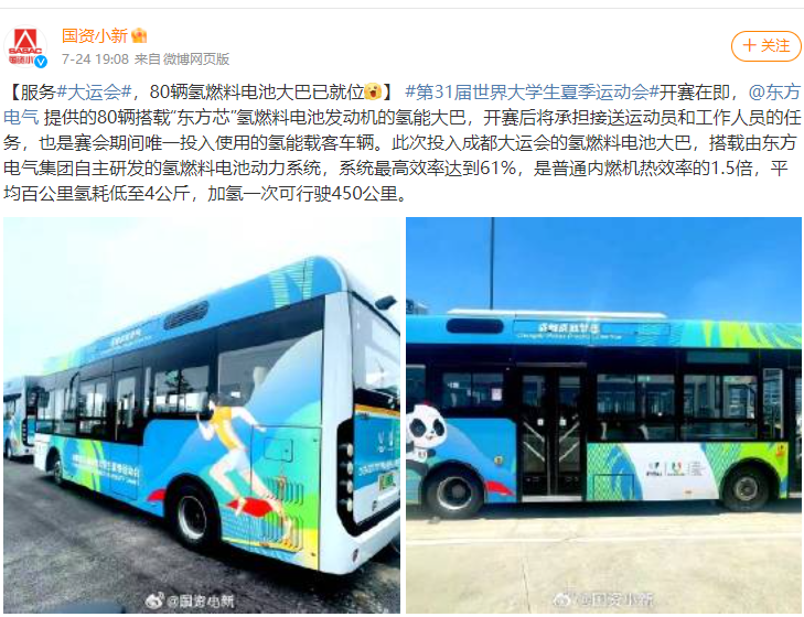 [国资小新微博]服务#大运会#,80辆氢燃料电池大巴已就位