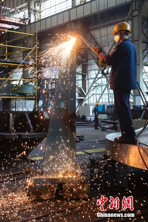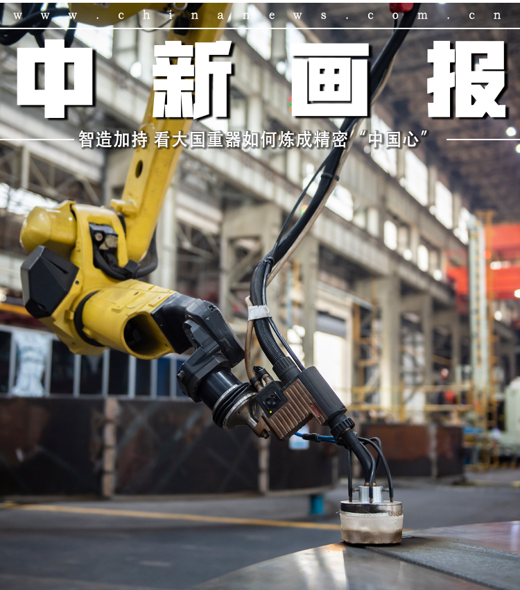 现在,车间已经建成集重型机加控制、数字化妆配、机械人焊接等为一体的新一代清洁能源装备重型制造车间。图为车间里的机械人焊接作业。