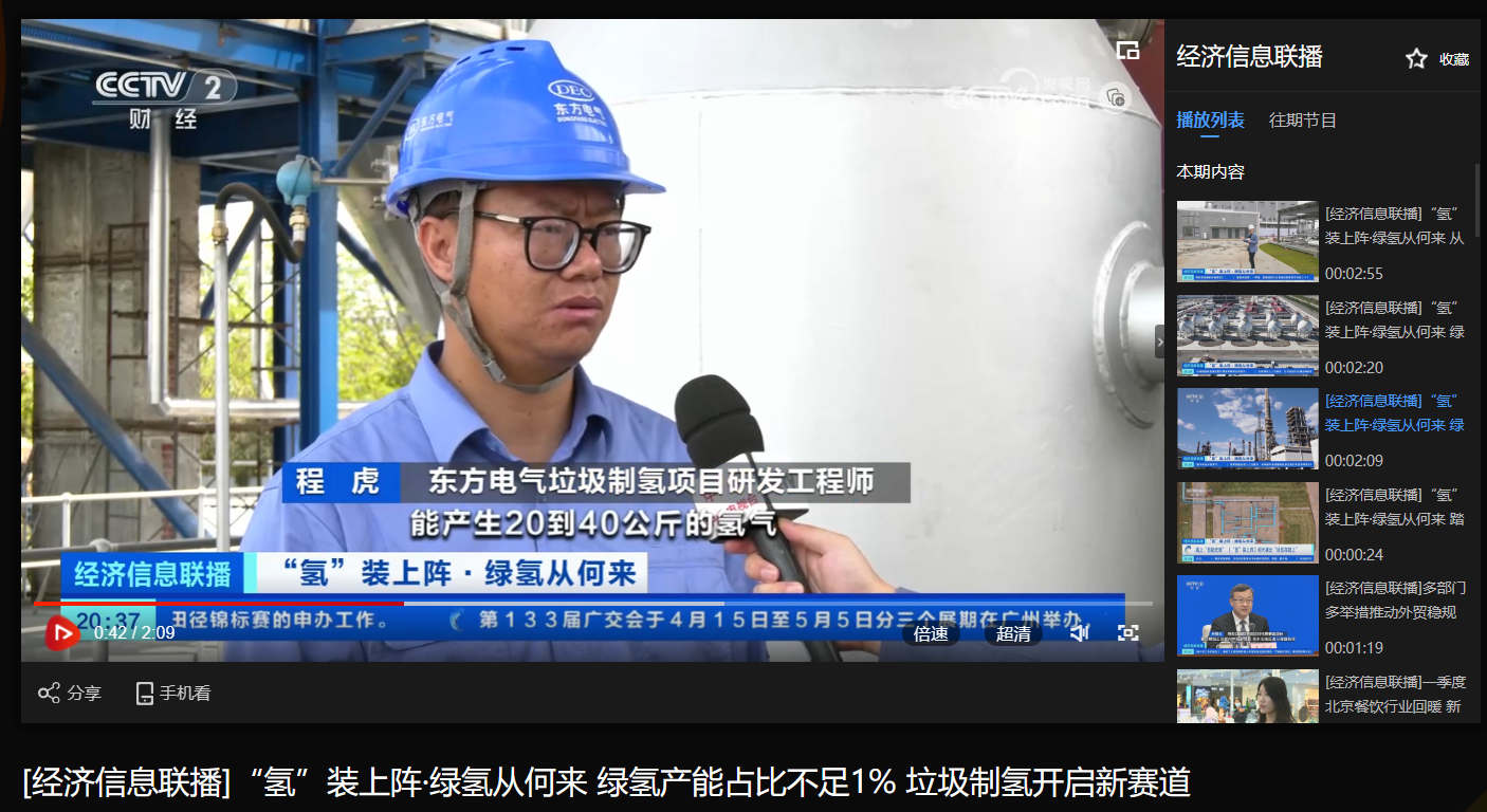 [央视经济信息联播]“氢”装上阵·绿氢从何来 绿氢产能占比缺乏1% 垃圾制氢开启新赛道