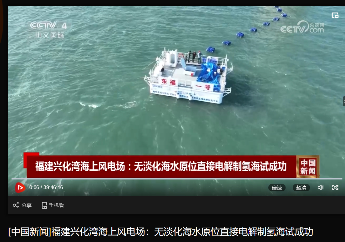 [ÑëÊÓÖйúÐÂÎÅ]¸£½¨ÐË»¯Í庣ÓÅÊÆµç³¡£ºÎÞµ­»¯º£Ë®Ô­Î»Ö±½Óµç½âÖÆÇ⺣ÊÔÀÖ³É