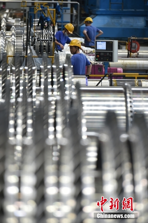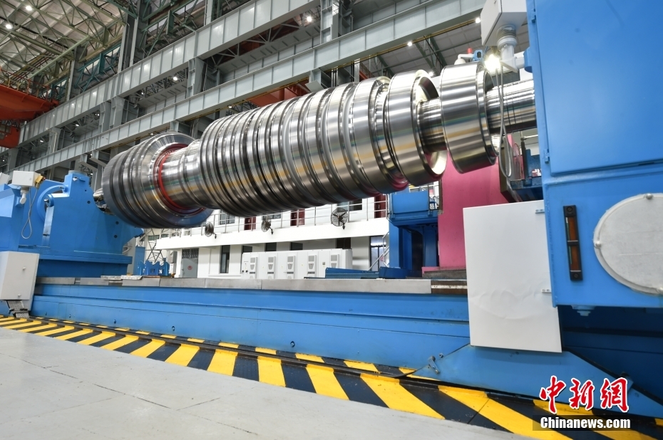 东方汽轮机的重型二分厂是公司最大的重型分厂,主要肩负燃气轮机、核电汽轮机、大型火电大部件加工及总装,全公司所有大型转子加工、装配及高速动平衡试验等事情。图为重型二分厂内景。