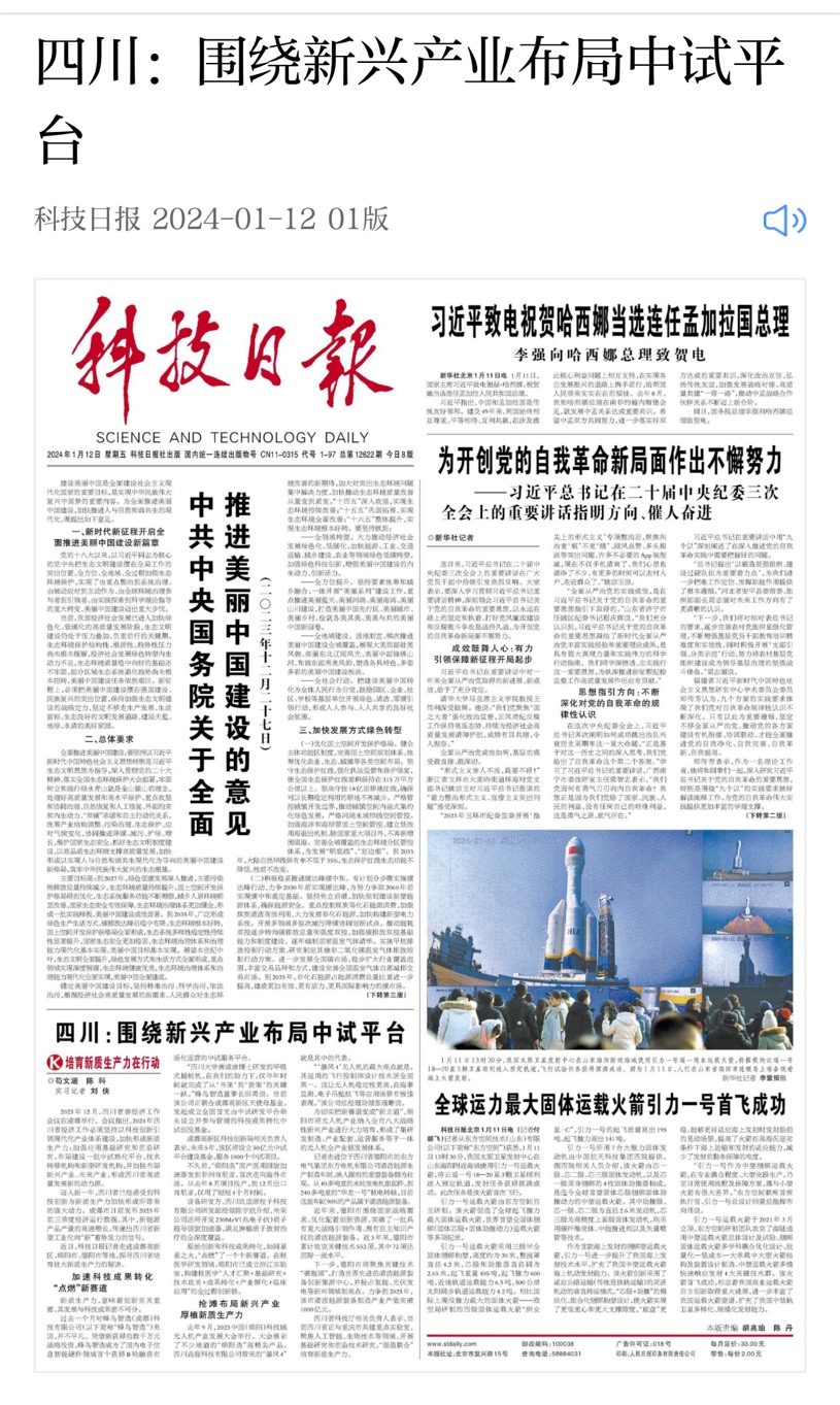 [科技日报] 四川:围绕新兴工业结构中试平台
