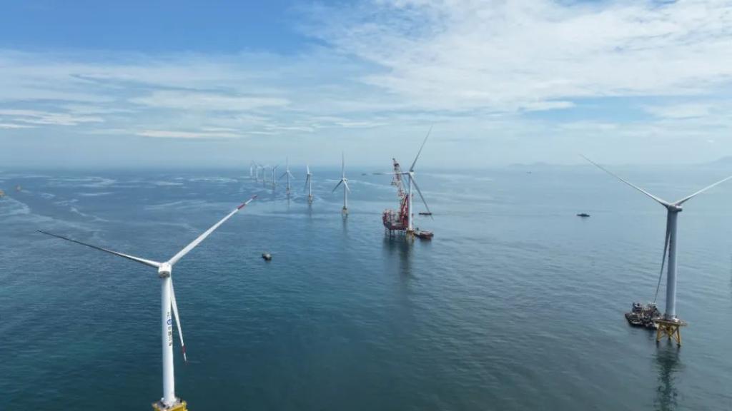 2023年6月28日,全球首台16兆瓦海优势电机组在三峡集团福建海优势电场完成吊装