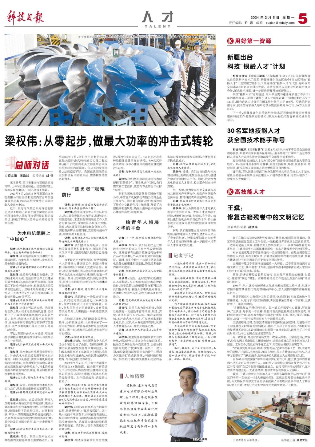 梁权伟:现在在水力发电行业,我国已经拥有一支履历富厚的研发、制造、装置、调试和运行人才步队。但在某些领域,如攻击式水电机组、可变速抽水蓄能水电机组、三机式水电机组等领域,优异人才数目还缺乏,需加着述育力度。