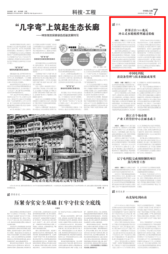 [中国电力报]天下首台500兆瓦攻击式水轮机模子通过验收