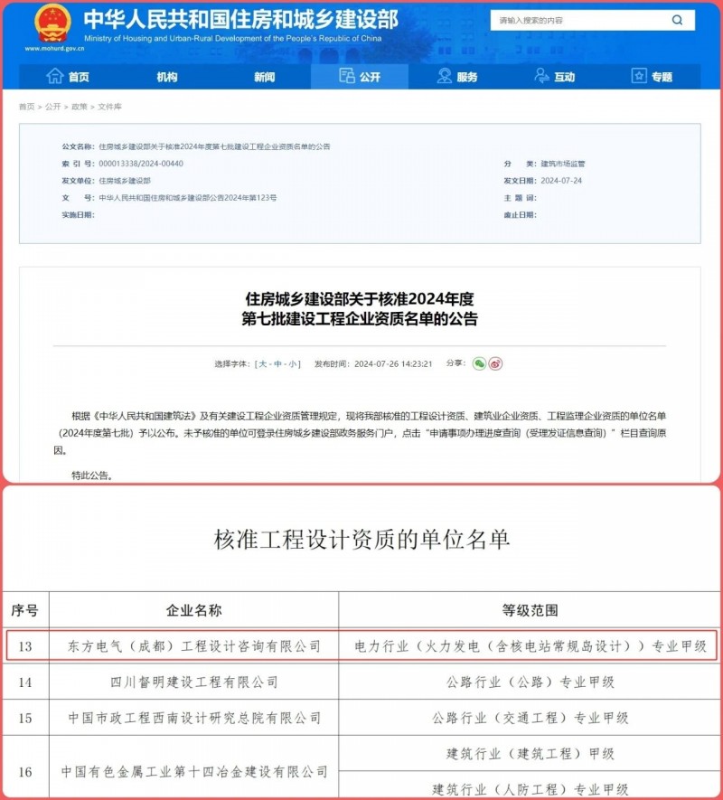 克日 ,中华人民共和国住房和城乡建设部宣布了2024年度第七批建设工程企业资质名单 ,凯时官网集团国际合作有限公司下属企业东方设计乐成获取电力行业(火力发电(含核电站通例岛设计))专业甲级工程设计资质 ,这是电力行业含金量最高的专业甲级工程设计资质之一 ,也是国家住建部近三年唯一批准的电力行业火电专业甲级工程设计资质 ,标记着凯时官网集团正式拥有电力工程甲级设计院可承接种种煤电、气电、核电(通例岛)以及电站升级刷新等工程的总设计和总承包营业。