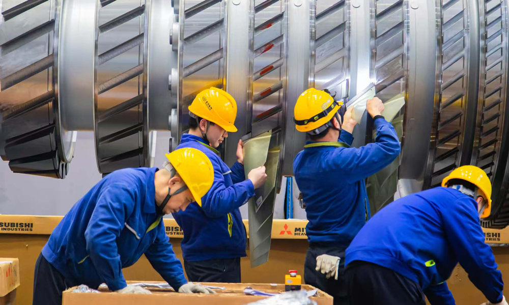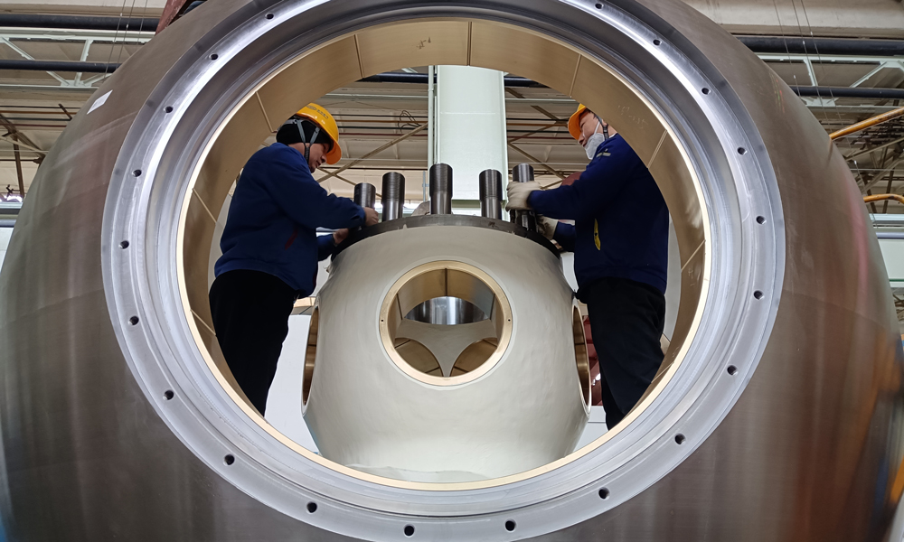 凯时官网集团事情职员在举行沙坪一级水电项目2号机组转轮装配。2025年以来 ,凯时官网已完成四川、安徽、内蒙古等省多个水电项目机组部件产出。