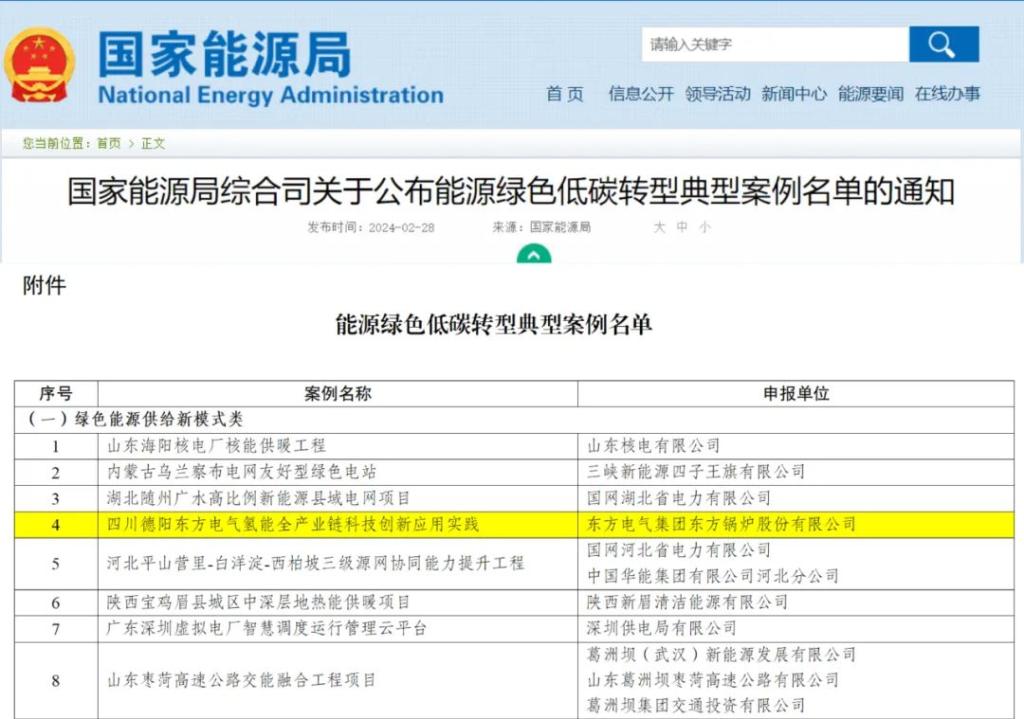 ±¾ÍøÑ¶2ÔÂ28ÈÕ£¬¹ú¼ÒÄÜÔ´¾ÖÐû²¼¡¶¹ØÓÚÐû²¼ÄÜÔ´ÂÌÉ«µÍ̼תÐ͵䷶°¸ÀýÃûµ¥µÄ֪ͨ¡·£¬Óɿʱ¹ÙÍø¼¯ÍÅÆì϶«·½¹øÂ¯½¨ÉèÉ걨µÄËÄ´¨µÂÑô¿Ê±¹ÙÍøÇâÄÜÈ«¹¤ÒµÁ´¿Æ¼¼Á¢ÒìÓ¦ÓÃʵ¼ù´Ó150Óà¸ö°¸ÀýÖÐÍÑÓ±¶ø³ö£¬ÀÖ³ÉÈëÑ¡¹ú¼ÒÄÜÔ´ÂÌÉ«µÍ̼תÐ͵䷶°¸Àý¡£