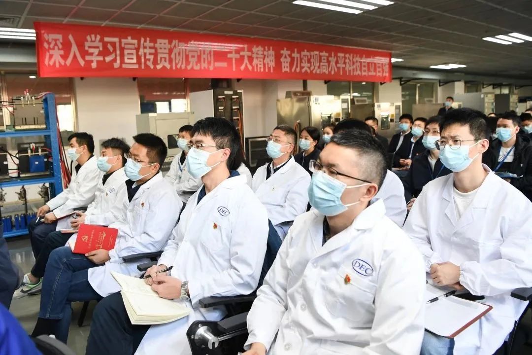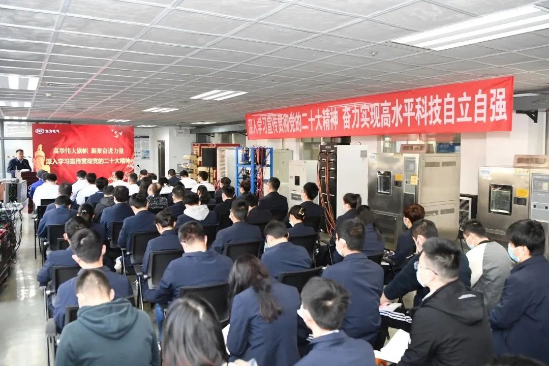 本网讯 为指导全集团宽大干部职工切实把头脑和行动统一到党的二十大精神上来 ,凭证凯时官网集团党组统一安排 ,11月22日 ,集团公司“高举伟大旌旗 凝聚奋进力量”党的二十大精神宣讲队首场宣讲报告会在东方研究院新能源电池测试实验室举行 ,用“行走的课堂”讲述“我们身边”拼搏奋进争先的鲜活故事 ,激励科研事情者以实干抢抓立异先机 ,为加速实现高水平科技自主自强孝顺“东方”力量。