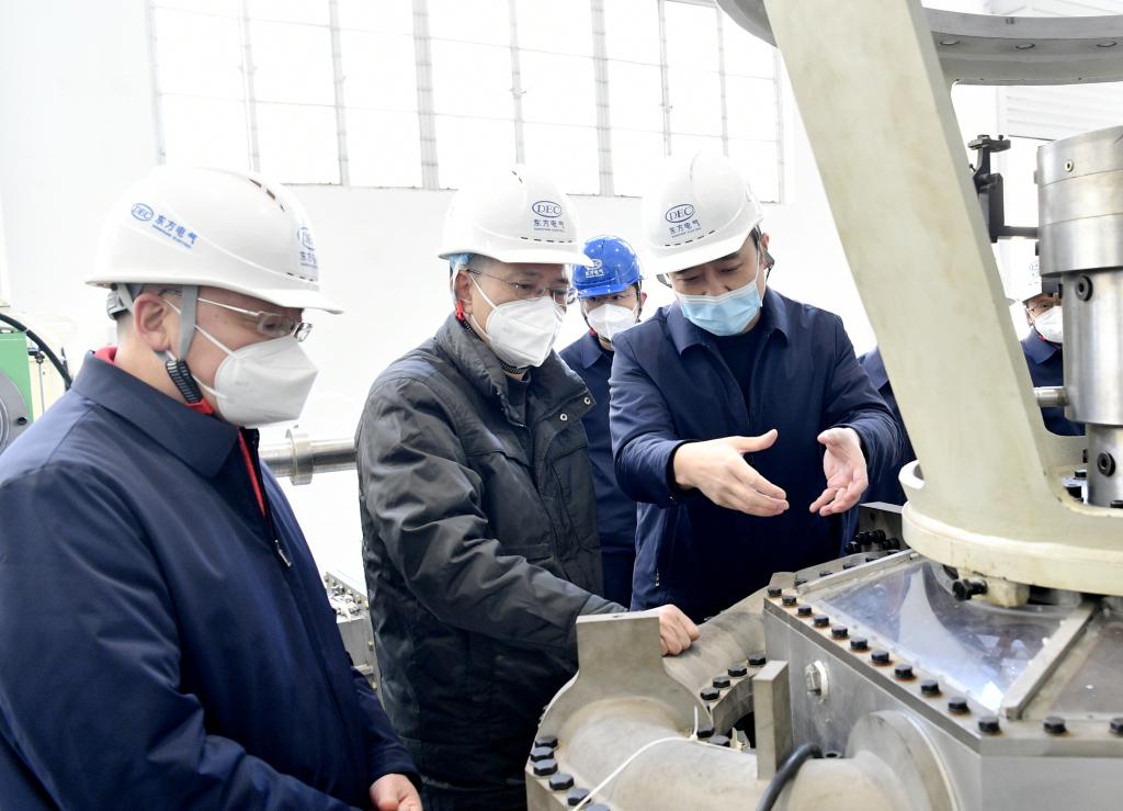 在东方电机,徐鹏深入企业智能攻击式水轮机模子试验台、金冲分厂、清洁能源装备重型制造数字化车间等地,详细相识企业科研攻关、数字化转型、绿色高端制造等情形。强调企业要加速实验立异驱动生长战略,以国家战略需求为导向,集聚力量举行原创性引领性科技攻关,把要害焦点手艺牢牢掌握在自己手中。要一连推动生长方法绿色转型,打造更多高端化、智能化清洁能源装备,着力推动高质量生长。